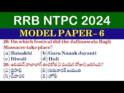 మోడల్ పేపర్ - 6: RRB NTPC Model Paper in Telugu || Most Important Questi...
